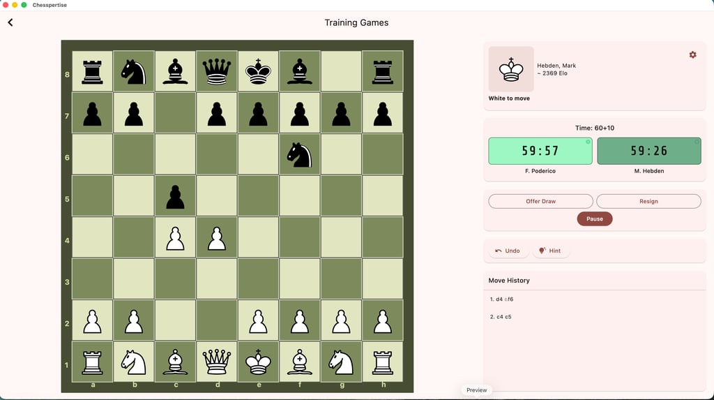 With the opponet preparation chesspertise automatically builds opening trees for both White and Black, collects and organises all games by colour, and lets you save them for future use. You can train directly against an opponent’s openings, explore and search their opening trees, and study their games in depth to prepare effectively.